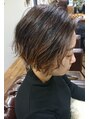 前髪長めの大人ハンサムショート。大人っぽいショートスタイルです。全体にいれたハイライトが巻いたりスタイリングするとおしゃれに際立ちます◎◎