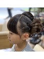 小さなお子様の、イベントのヘアセットでしす。七五三の時でしたが、髪飾りがなくても可愛くできるように華やかにボリュームを出してセットしました。いろんなイベントで使えるようにオンオフの切り替えを楽しめます。