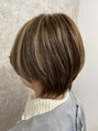 ハイライトを全体的に入れて動きを出したショートです。カットは頭の形が綺麗に見える丸みカットと毛先は軽さを出してます。ポイントでハイライトもおすすめです。