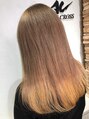 ベースは全体、2回以上ブリーチしています!毛先はイエローに、ベースはミルクティー系のベージュに!ポイントは毛先のイエローが孤立しないように自然につなげたことです!