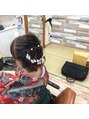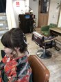 - ヘアセット、ハーフアップスタイル、袴着付け