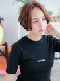 色気を引き出す顔まわりにこだわったスッキリショートボブ。耳まわりの質感が360°どこから見ても大人可愛いを印象を与えます。26ミリのコテでランダムに簡単に巻いて、かるくオイルをなじませれば完成!!