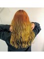 ブリーチ2回必須!塩基性カラーで作る派手髪グラデーションカラー♪オレンジからイエローに個性派カラーです◎グラデーションカラーなので、巻いた時がより可愛いです!