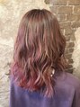 ハイライトとグラデーションの組み合わせで立体感のあるカラーに。切りっぱなしラインのミディアムにピーチピンクで女の子らしさたっぷり♪