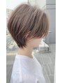 春オススメのスタイルです。柔らかい質感に透明感が出るAVEDAカラーです。襟足、顔まわりの質感にこだわってカットしています。是非オススメのショートです。