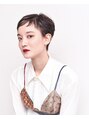 美骨小顔補正カットでベリーショートにカットしています。セットも簡単に決まりますよ♪