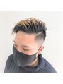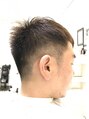 サイド&バックは、清潔感のあるツーブロ刈上げ。トップの硬く広がる髪質は、柔らかくみえるツイストパーマ