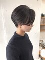 シルエットにこだわった前下がりショート。ほお骨にかかるような前髪の長さで後ろに流せるようにした大人なオフィスヘアにぴったりなスタイルです。