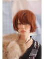 外ハネボブ・オレンジカラー・毛先パーマ・斜め前髪/ホットペッパービューティー