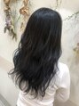 一年くらい前にしたブリーチの履歴を活かして、ブラウンは一切使わず、濃いネイビーとグレーを使って染めているので色落ちの過程は透明感たっぷりなグレーになります☆染めたては一見黒髪っぽく見えますが、光に透けた時とても可愛いです♪