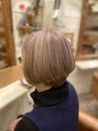 きれいな形とツヤたっぷりのベージュ系カラーで洗練されたショートヘア 白髪を染めずに生かしたカラー