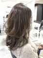 動きのあるスタイルにするために表面にレイヤーを入れ全体に軽さを入れ動きのある毛流れと束感が出るようにカットし楽にコテ巻きできるようなスタイルにしました。色味はN.カラーでブルーアッシュで透明感が出るようにしました。