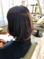 不動で人気のベージュカラーで軽く、カットで少し段を入れているので動きやすくなります。アイロンで下は外ハネ上は内巻きにふんわりして少しほぐすとかわいいです。