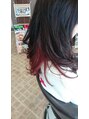 内側のブリーチしてある部分に赤系の色を入れました。[縮毛矯正/カラー/ダブルカラー/ブリーチ/ハイライト/白髪/白髪染め/グレイカラー/カット/髪質改善も人気]