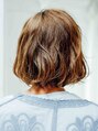 ボブスタイルの表面にうねりを付けて軽い印象に!カラーリングも透け感があるベージュブラウンにして全体的に柔らかい印象に!前髪はシースルーで抜け感を出しました。スタイリングはシアバターを軽く揉みこみ束感をつくりました。
