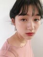 真ん中を薄めに作ったシースルーバングがポイントのマッシュショート。耳掛けしてもみあげだけをちょろっと出すのがポイント。ウェットな質感にして色っぽさをプラスしたショートです。カラーはオリーブグレージュで透け感を楽しんで☆