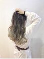 黒染めしていたのでエアタッチと言う技法でブリーチで出来るだけ明るくしました。デザインを入れた後にグレー系カラーでグラデーションカラー。根元が暗めで毛先にかけて明るくなるようにしました!