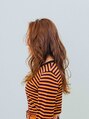 ローレイヤーのスタイルにトップから強めカールのパーマをかけています。前髪の長めなのでエッジが効いているが、大人な女性を演出してくれます。カラーはツヤ感のあるオレンジベージュ。ロングスタイルですが、軽やかでさわやかなスタイルでおすすめです。