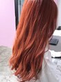 オレンジのロングヘアーです。一度ブリーチで抜いていますので、とても綺麗なオレンジに仕上がります。ケアブリーチがオススメです。
