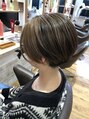 ショートのスタイルにエアータッチでコントラストをつけた動きのあるカラーに(/・ω・)/オンカラーでうえからベージュをのせてます♪