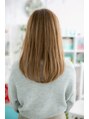 目力UPの斜めバングと輝く透明感で、男女問わず人気のシルキーストレートに。パッと人目を引く明るいツヤカラーで友達を一歩リード。レイヤーで動きを出して軽やかに、前下がりラインで小顔見せも叶います。シンプルだけどグラマラスなラブストレートです。