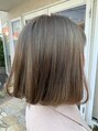 全頭ブリーチ後イルミナカラーをオン。上半分はミルクティーカラー。下半分はピンクカラー。