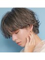 小顔ショートヘア。赤みのないグレイべージュカラーとニュアンスカールで動きをつけたマッシュショートスタイルでお洒落なヘアスタイルに。小顔カット、透明感カラーで再現しやすいヘアスタイルに。