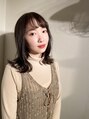 片下でワンレンカット毛量調整で束感をだし シースルーバングで今っぽくカラーはアプリエカラーで透け感を