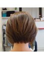 ショートから伸ばす過程のショートボブです。スロウカラーで明るい白髪染めも!