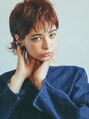くしゃっとやわらかな質感と、女性らしい温かみのあるブラウンがポイントのウルフスタイル!トレンド真っただ中のこのヘアは、ベーシックなショートに変化をプラスしたい方におすすめ。定番のデニムスタイルもフレッシュに仕上がります!