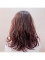 ベースにハイライトをプラスした、少し個性派チェリーピンクのミディアムスタイル。