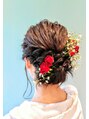 卒業式のヘアセットです。飾りは生花を使っているのでとても華やかで着物や袴に負けませんね^^