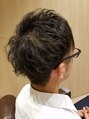 くせ毛を活かしたオシャレなカジュアルマッシュスタイルです(^-^)vモデルさんの柔らかな雰囲気をくせ毛と動きのある毛束で更にスタイリッシュに仕上げました♪サイドはツーブロックでしっかりとメリハリを出しました。ワックス&スプレーでスタイルをキープ!