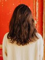 前上がりで段の入っていないワンレングスのスタイル。前髪をかきあげることにより大人っぽさとカッコよさを演出。カラーは品があり落ち着いて見えるバイオレットブラウンのカラーにしました。乾かしたら、ウェーブで巻いてあげましょう。