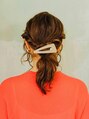 サイドの毛を二つに分けてツイストしながら後ろまで編んでいき、一本にまとめたところに巻き付けます。両方できたら、こめかみ、もみあげ、みつえりの毛をとっておいて巻くだけ。
