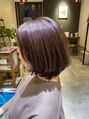 バイオレット系で黄色味を抑えつつ、ブラウン系を少し強めに。重たくなりやすいネープを軽さを表現。
