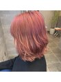 スタイルは肩上ワンレングスボブ。カラーに関してはブリーチ2回ほどの脱色でつくる、サーモンピンク。ケアブリーチ使用しています!色素をうすめで配合しています為、髪質によりぬけるのがはやいです。その為ピンクシャンプーで持続力アップできます【池袋】