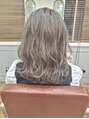 ブリーチ毛にグレージュカラーを!!毛量が多いのでかなり軽く量を調整後波ウェーブで仕上げました!