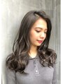 胸レングスのセミロングスタイル!透明感のあるダークアッシュで大人な雰囲気にカラーリング☆32mmのコテでランダムに動きをつけてフェミニンなスタイルに。