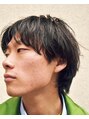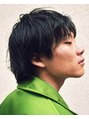 やや丸みがあり、毛先がまとまるような質感、軽さと重さを感じるいなたい雰囲気のウルフ。ざっくりセンターパートに味付け。