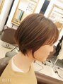 大人ショートスタイル。トップにふんわりボリューム感。襟足のタイトさもしっかり強調して清潔感を加えます。