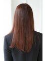 前上がりのワンレングスベース、レイヤーを表面に入れる。8トーンのピンクブラウンにヴァイオレットをプラスして深みをアップ