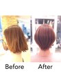【気に入ったスタイルはブックマークしてご提示下さい】大人のショートスタイルです。カットで、形を作っているので、そこまでスタイリングはしなくても大丈夫ですが、バームをつけて、少し動きをプラスするのがオススメです。2枚目の写真はBeforeAfterです