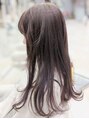 透明感のあるヴァイオレットアッシュのカラーにロングのワンカールでかわいいスタイルです♪巻いてもストレートでも可愛いですよ!