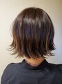 軽めのボブスタイルです。伸ばしかけの方にもオススメです。カラーはランダムに太めのハイライト。