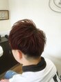 サイド、バック薄めのスッキリしたツーブロック!!ワインレッドで派手すぎないカラーに仕上げました!!