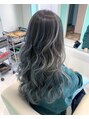 シルバーブルーのグラデーションに!ハイライトバレイヤージュで立体感と透明感たっぷりに☆