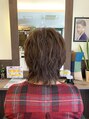 顔まわりとトップはスッキリ軽く段を入れて襟足をのこしました。サイドにポイントカラーの赤を入れてアクセントをつけました。全体はアッシュ系でまとめてみました