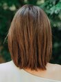カラーリングは透明感がありつつナチュラルなグレージュで女性らしさと柔らかさを出し、カットは重たくもパサついても見えないよう量感調節を丁寧に行いました。ツヤが出るようトリートメントもしっかり行いました