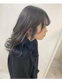 上は落ち着いたグレージュにインナーはビビッドめだけど深めのブルーで寒色系のインナーカラーに、、、!